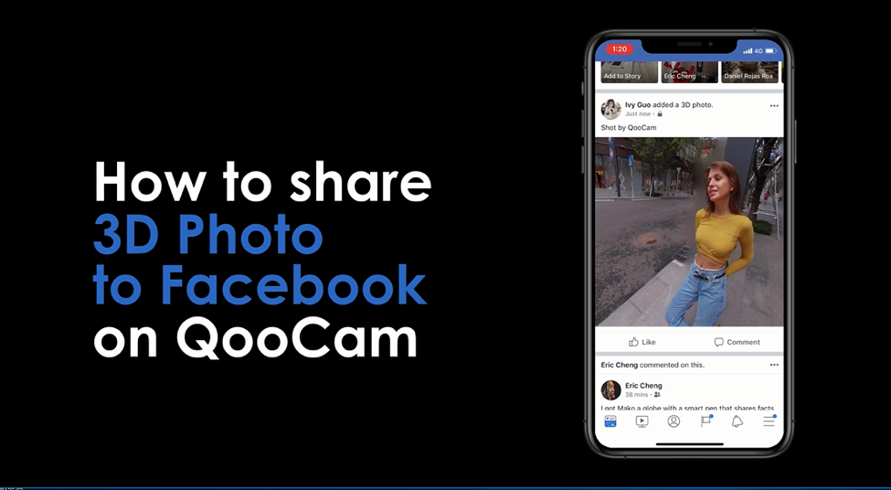 Pls noted that the QooCam 3D photos can be only shared via iPhone with duel-lens camera. With Facebook adding support for more devices to upload 3D photos, more users can experience this feature in the future.
